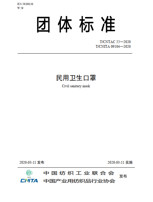 ? ? ? ?根據(jù)《中國(guó)紡織工業(yè)聯(lián)合會(huì)團(tuán)體標(biāo)準(zhǔn)管理辦法》和《中國(guó)產(chǎn)業(yè)用紡織品行業(yè)協(xié)會(huì)團(tuán)體標(biāo)準(zhǔn)管理辦法》的有關(guān)規(guī)定,中國(guó)紡織工業(yè)聯(lián)合會(huì)、中國(guó)產(chǎn)業(yè)用紡織品行業(yè)協(xié)會(huì)共同批準(zhǔn)T/CNTAC 55-2020...