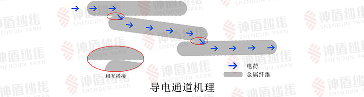 纖維混紡導(dǎo)電紗的導(dǎo)電機理有三種,即:導(dǎo)電通道機理、隧道效應(yīng)機理、場致發(fā)射機理。
