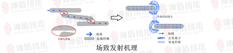 電紗線中,金屬纖維之間不能相互搭接,但其間距較小,無法形成鏈狀導(dǎo)電通道的情況下,外加電壓較高時,場致發(fā)射導(dǎo)電機理起主導(dǎo)作用。