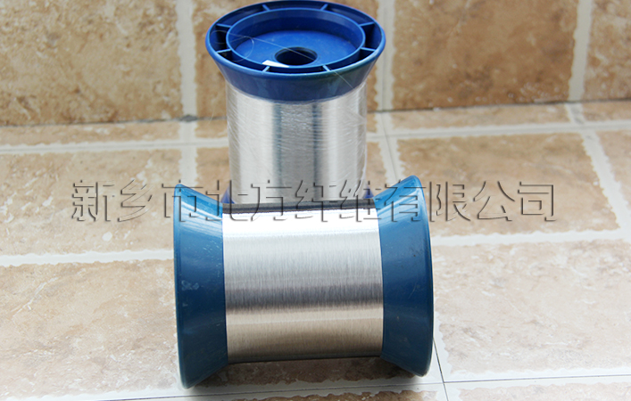 金屬纖維混紡導電紗線,是由金屬短纖維與普通的常規纖維按一定比例混紡制成的導電紗線,它是一種導電成份非均一性的導電紗線。它以普通的常規纖維為主體,以金屬纖維為導電成份。金屬纖維在此類紗線中的分布,從縱向看是大體均勻的分布,從橫截面看呈隨機分布狀態,也就是說金屬纖維在導電紗線中不可能完全達到多相均勻分布狀態。